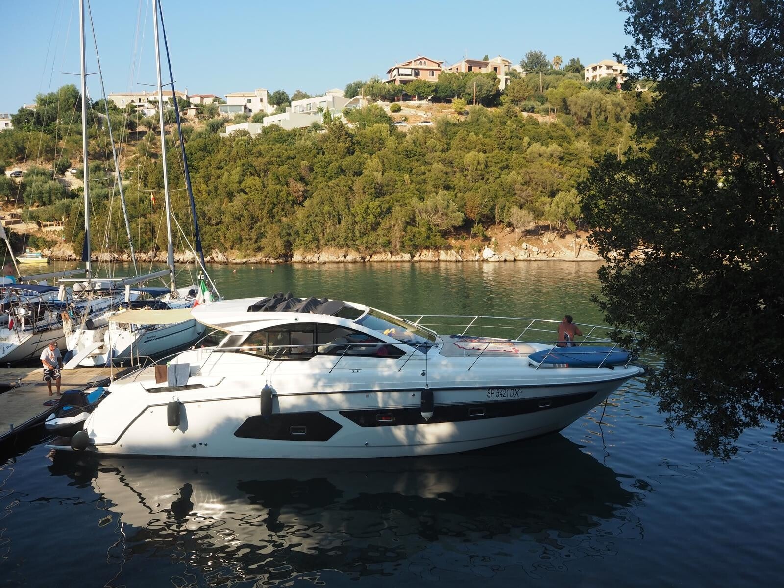 A bordo trovi ampi prendisole, zone ombreggiate, pozzetto vista mare e salone interno con bagno e cabine, così puoi scegliere sempre tra sole, ombra o aria condizionata. Con massimo 8 persone, l’esperienza è esclusiva e privata: non una semplice gita, ma una vera giornata su uno yacht.